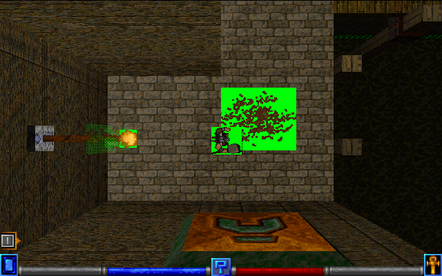 The 3D Blaster VLB promised a Direct3D driver, but when Microsoft finally released the API, there was little the Gaming Glint could do. Creative took its time with the driver and memory expansion module. That was an additional $50 to get capacity assuring d3d compatibility. As far as I know, nobody has even a picture of the module. The small fraction of games that can live with so small video memory can be divided further because some demand alpha channel outright. Sad losses are some of the most primitive 3d games like Grim Fandango or Resident Evil. A game as compatible as X: Beyond the Frontier also fails. It will be much shorter to describe games that did run. MS Flight Simulator 98, this one is a keeper. Then, the first Motoracer, if you know how to persuade it. The visuals seem to suffer from some precision issues. On the track appear a few wrongly colored pixels and sideline textures from black horizontal lines between them- is that a subpixel accuracy issue? Another game like Take No Prisoners is Mage Slayer. Same transparency issues, and look how the texture of the wall at the bottom is warped: